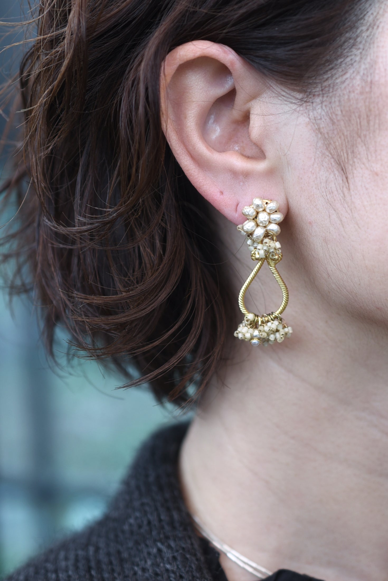 material:真鍮、コットンパール、ガラスビーズ、フランス1960'sヴィンテージパーツ、