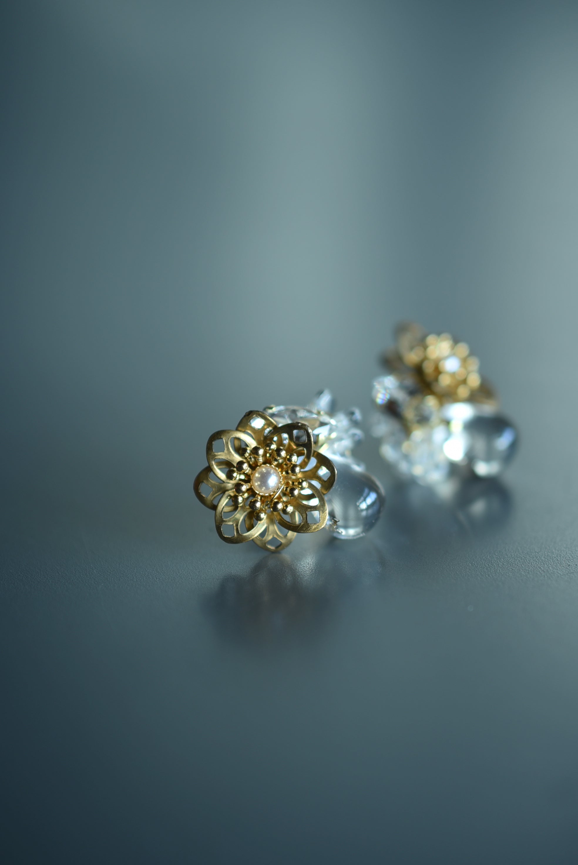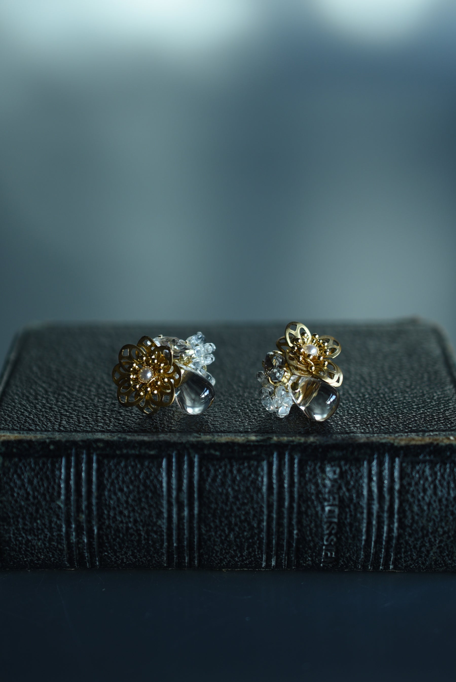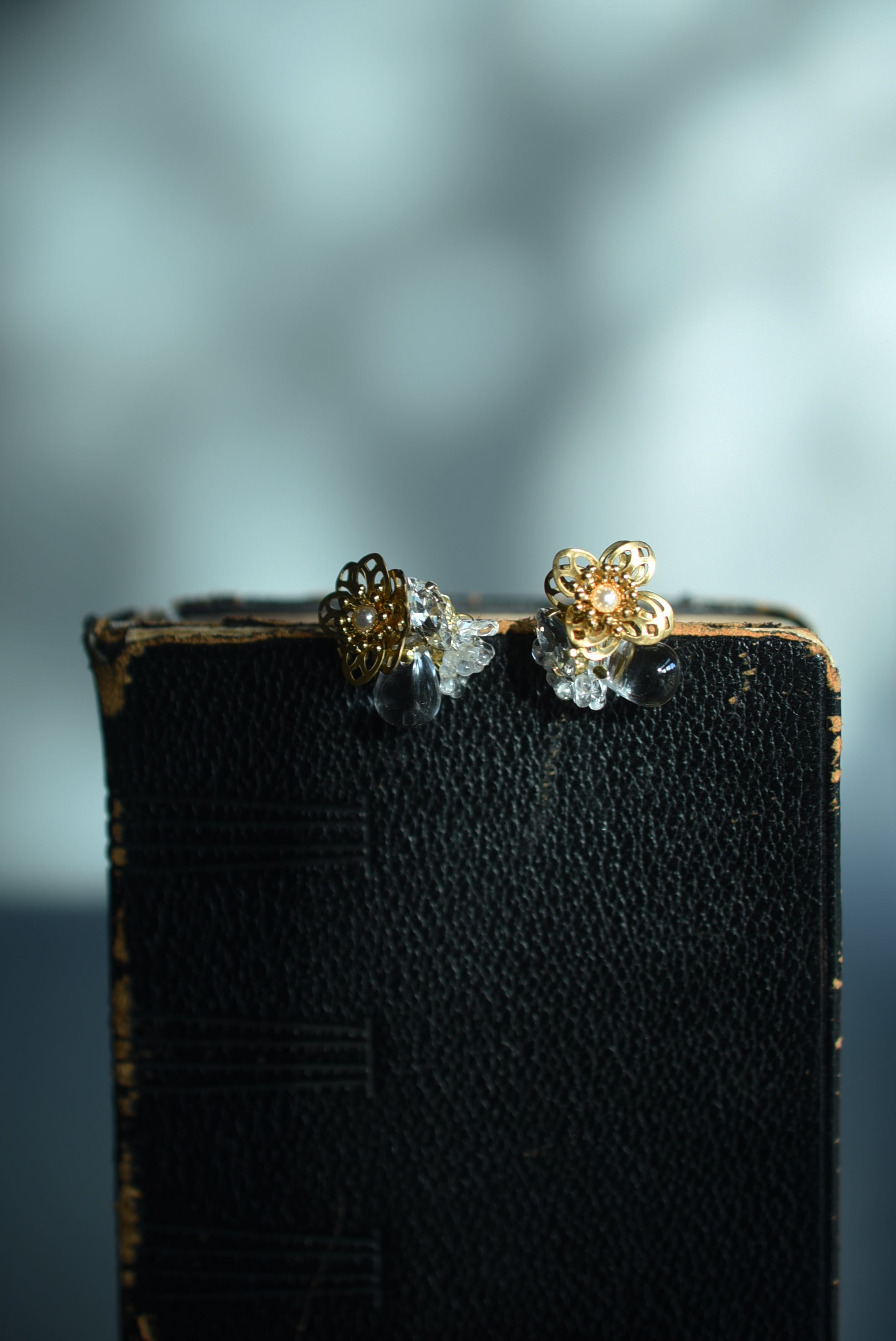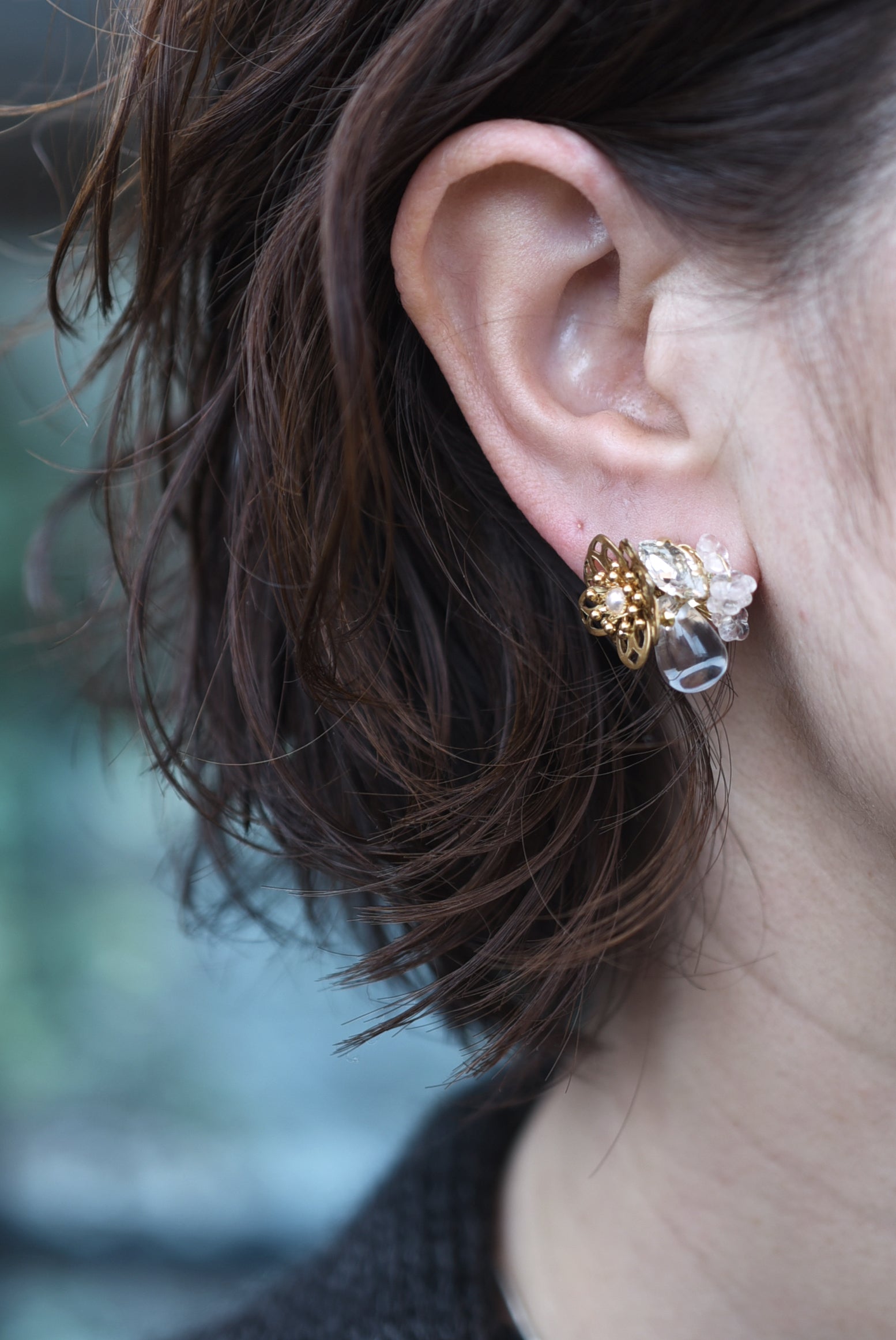 material:真鍮、、ガラスビーズ、スワロフスキーガラス、チェコガラス、フランス1960's ヴィンテージパーツ、水晶